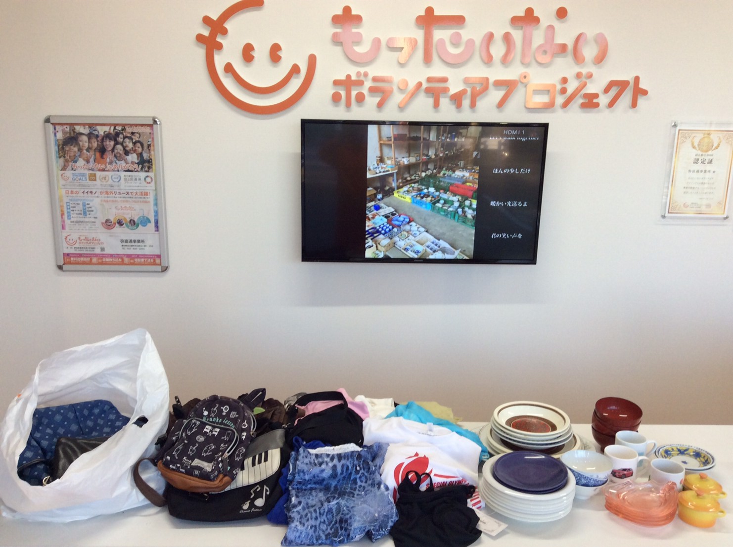 たくさんの方より、工具、雑貨、古着などの寄付品をお持ち込み頂きました。