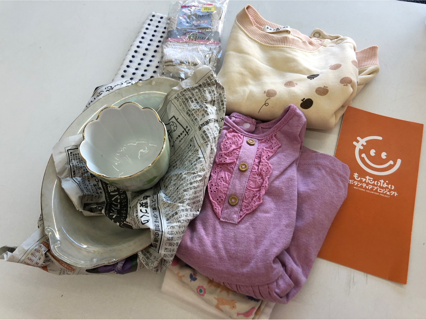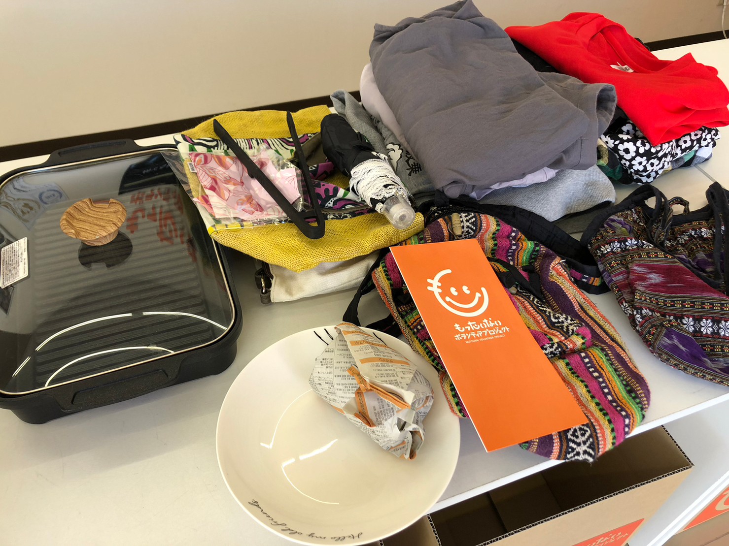 たくさんの方々より、古着、雑貨、食器などの寄付品をお持ち込み頂きました。