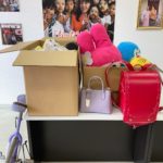 たくさんの方々よりランドセルや一輪車などの寄付品をお持ち込み頂きました。