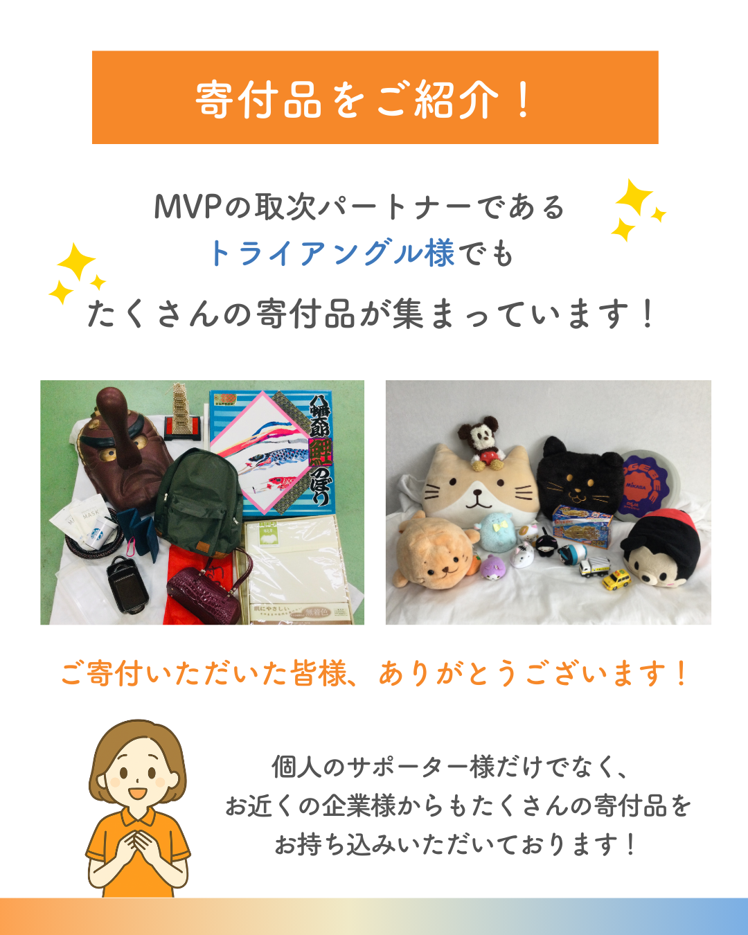 いつもたくさんの寄付品をお預かりしてくださり、本当に助かっています😊